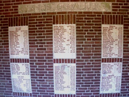 Wandtafeln an der Friedhofskapelle in Herzlake. Ehrenmal für den Ort Herzlake sowie die umliegenden Ortschaften.