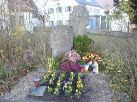 Hilpertshausen, Gemeinde Unterpleichfeld, Landkreis Würzburg, Unterfranken, BayernPLZ 97294 Das Kriegerdenkmal befindet sich vor der Kirche St. Vitus im Kirchgarten. Ein Steinkreuz, daneben eine Namenstafel in Form eines Kreuzes.