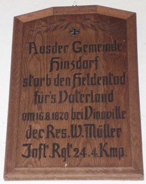 Tafel 1870/71: Aus der Gemeinde Hinzdorf starb den Heldentod fürs Vaterland: (Name)