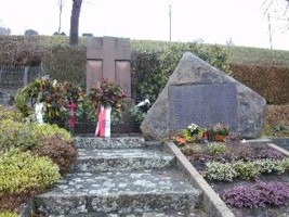 Das Kriegerdenkmal befindet sich auf dem Friedhof. Eine Sandsteinplatte mit herausgearbeitetem Kreuz und Jahreszahlen. Daneben ein Steinfindling in den eine Namensplatte aus Metall eingesetzt ist.