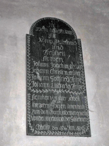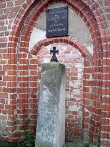 In der Kirche Gedenktafel 1815 und an der Kirche Gedenkstein für Kriegsteilnehmer 1813-15. Kriegsgräberstätte. Namen und Daten aus Archiven.