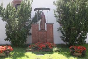 bei der Kirche; aus Holz, in der Mitte Heiland überdacht; zusätzlich Hinweis zu Soldaten von privaten Gedenksteinen