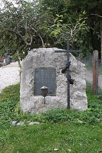 von privaten Gedenksteinen. Ferner im Friedhof, Naturstein mit Gedenktafel und Kreuz (ohne Namen)