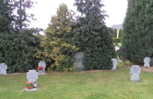 Gedenkstein in der Mitte der Kriegsgräber: „Im stillen Gedenken für die am 7.4.1945 deutschen Soldaten. Ruhet in Frieden.“