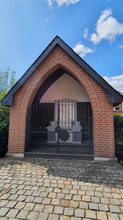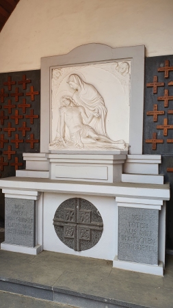 Auf dem Platz vor der Kirche St. Jodokus wird an die zivilen und militärischen Opfer beider Weltkriege in einer Kapelle erinnert. Dort hängen kleine Holzkreuze mit den jeweiligen Namen. Lage: beim Blick auf Kirchenhaupteingang im Turm auf der rechten Seite.