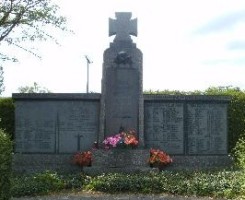 Auf dem Gemeinschaftsfriedhof Gumpen befindet sich das Kriegerdenkmal. In der Mitte eine rechteckige Steinsäule mit einen deutschen Kreuz als Abschluß. Vorne ist eine Inschriftentafel aus Marmor angebracht, Darüber ein Stahlhelm mit einem Lorbeerast. Links (1. WK) und rechts (2. WK) der Säule sind Namenstafeln aus Marmor an einer Steinwand angebracht.