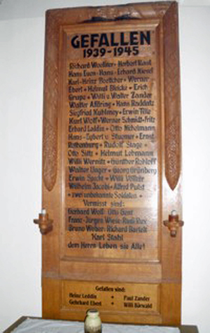 Gedenktafeln in der Kirche für den Feldzug von 1813 - 1815 sowie vom 2. Weltkrieg.