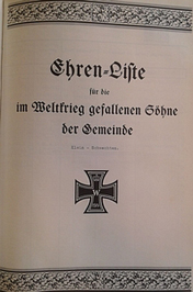 Denkmal: Aus dieser Gemeinde starben den Heldentod 1914-1918 (Namen) Ehre ihrem Andenken!