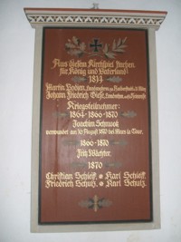 Tafel 1814-1870: Aus diesem Kirchspiel starben für König und Vaterland 1814: (Namen)
