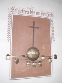 Gedenktafeln in der Kirche; Gedenkleuchter 1. Weltkrieg; Soldatengrab