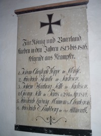 1813-1815 (Gefallene): „Für König und Vaterland starben in den Jahren 1813-1816 folgende