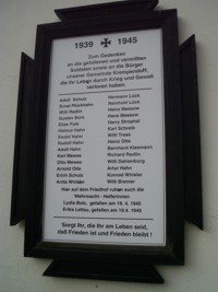 Bürger der Gemeinde Kremmendorf, die ihr Leben durch Krieg und Gewalt verloren haben. Sorgt ihr, die ihr am