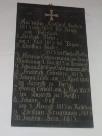 Tafel 1815: Aus diesem Kirchspiel starben 1813 und 1814 für König und Vaterland:“