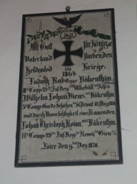 Tafel 1864-1871: Mit Gott für König & Vaterland starben den Heldentod im Krieg 1864/1870: