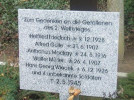 Im Soldatengrab auf dem Friedhof sind auch 4 unbekannte Soldaten bestattet, gefallen am 2. Mai 1945.