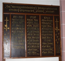 Zur Erinnerung an die in den beiden Weltkriegen gefallenen und vermissten Kriegern aus der Gemeinde Lackendorf (Namen) Gott gebe Ihnen die ewige Ruhe und das ewige Licht leuchte Ihnen
