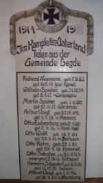 Die Gedenktafel für die Gefallenen des 1. Weltkrieges enthalten mehr Daten, und die Tafel für den 2. Weltkrieg mehr Namen (wahrscheinlich alles Namen aus dem Nachbarort Roddan, deshalb hier separat aufgeführt). Zusätzliche Informationen in Blau vom Volksbund Deutsche Kriegsgräberfürsorge: www.volksbund.de/graebersuche