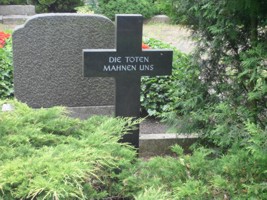 Das Kriegsgrab enthält keine Namen und keinerlei Hinweise darüber wie viele Tote dort liegen. Zusätzliche Informationen in Blau vom Volksbund Deutsche Kriegsgräberfürsorge: www.volksbund.de/graebersuche