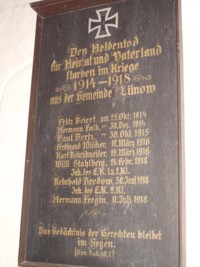 Tafel: „Den Heldentod für Heimat und Vaterland starben im Kriege 1914-1918 aus der Gemeinde Lünow.