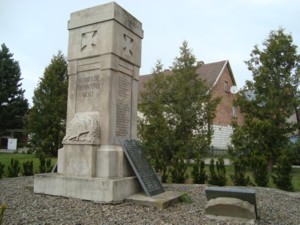 Imposantes, hohes Ehrenmal mit Reliefs des Eisernen Kreuzes und Helm. Auf dem Denkmal sind die Toten des ersten Weltkrieges aufgeführt. Am Denkmal wurden ergänzend Namenstafeln mit den Opfern des zweiten Weltkrieges schräg angelehnt. Eine Zusatztafel erinnert an die Opfer des Nationalsozialismus.