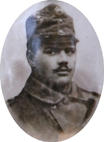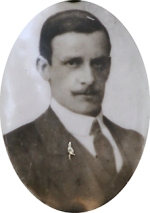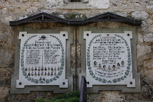Aussen an der Kirche; zwei Gedenktafeln mit Namen und Fotos (die Namen im Text und auf der Fotoplakette sind zum