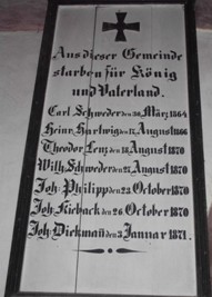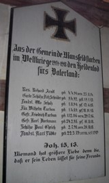 In der Kirche befindet sich auch eine Tafel für die Gefallenen des 1. Weltkrieges aus Laaske. Diese werden in einem separaten Kapitel für diesen Ort eingefügt.
