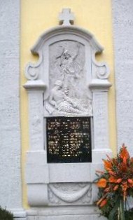 An der Außenseite Kirche befindet sich das Kriegerdenkmal.