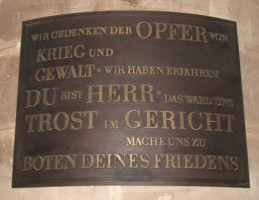 Wir gedenken der Opfer von Krieg und Gewalt.Wir haben erfahren. Du bist Herr.Das ward uns Trost im Gericht.Mache uns zu Boten Deines Friedens.