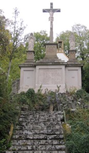 In der Nähe der Staatlichen Regelschule steht eine kleine Kapelle auf einer Anhöhe. Von der Stadt kommend, führt eine Treppe auf die Anhöhe und zum Denkmal. Das Denkmal besteht aus drei Mauerteilen, wobei die äußeren Teile nach hinten versetzt sind. Auf ihnen stehen die Jahreszahlen 1813 und 1913. Auf dem mittleren Teil stehen die Namen. Oben, auf der Mauer, steht mittig Jesus am Kreuz. Rechts und links von ihm stehen ein Mann und eine Frau.