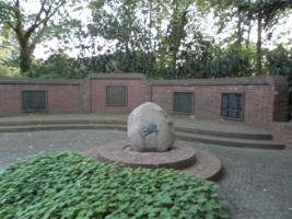 Zusatztafel: Walter Neuse, Gründer des Ehrenmals Rahmstraße – Möltgenshof 1922 – 1945 Neubau 1952 – 1981 Wiederaufbau