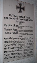 Tafel 1813-1918: Für König und Vaterland gaben aus der Gemeinde Motich ihr Leben: (Namen)