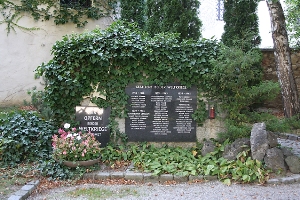 Bei der Kirche; Naturstein mit Gedenktafeln; zusätzlich Hinweise zu Soldaten von privaten Gedenksteinen