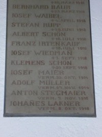 Gerahmte Gedenktafeln im Eingangsbereich der Mutlanger Kirche.