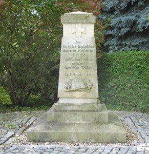 Das Sandsteindenkmal von Treben enthält die Namen sieben Gefallener und Vermisster des I. Weltkrieges. Die Auftragsvergabe für die Sanierung des Kriegerdenkmals erfolgte mit Beschluss des Gemeinderates vom 16.08.2001. In der Symbolik finden sich Eisernes Kreuz, Stahlhelm, Schwert, Lorbeerblatt und Eichenlaub.