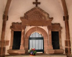 An der Wand der Turmhalle der ev. Kirche Oberbronn befindet sich ein reichverziertes Kriegerdenkmal aus rötlichem Sandstein in Form eines Epitaphs. In der Mitte unter einem Wappenschild eine Inschrift. Rechts und links schwarze Tafeln mit Namen und Daten der Gefallenen des 1. Weltkrieges. Darunter auf einem altarähnlichen Block weitere schwarze Tafeln mit den Namen und Daten der Opfer des 2. Weltkrieges.
