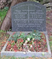 Familiengrab, Hier ruht unser unvergeßlicher Sohn und Bruder Unser aller Sonnenschein, ging so früh ins Jenseits ein, folgte seinem treuen Freund der in der fremden Erde ruht.