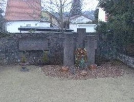 Im Eingangsbereich des Friedhofes befindet sich ein Steinfindling mit angebrachter Steinplatte. Links daneben befinden sich drei Steinkreuze ohne Namen Quelle: Ehrenbuch der Stadt und des Landkreises Hanau: Werner Kurz, Jens Arndt, Arbeitsgemeinschaft Hanauer Militärgeschichte/2001 Seite 84