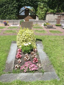 Öfingen (Soldatengrab), Stadt Bad Dürrheim, Schwarzwald-Baar-Kreis, Baden-WürttembergPLZ 78073 Das Denkmal befindet sich auf dem Friedhof. Ein bepflanztes Grab mit einem überdachtem Holzkreuz. An dem Holzkreuz ist eine Holztafel angebracht mit den Namen.