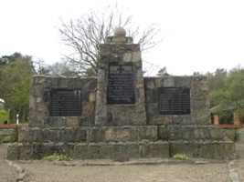 In der Ortsmitte das dreiteilige Ehrenmal für die 6 bzw. 15 Kriegstoten beider Weltkriege.