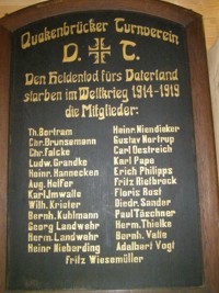 Die hölzerne Ehrentafel des Quakenbrücker Turnverein (QTV) befindet sich im Stadtmuseum der Stadt Quakenbrück, Markt 7 Bis auf „Th. Bertram“ sind alle genannten Namen sind auch auf den Ehrentafeln des Ehrenhains in Quakenbrück aufgeführt.