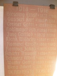 Sandsteintafel an der Wand der Aussegnungshalle auf dem Friedhof in Reichenbach bei Winnenden.