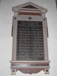Tafel: „Den Heldentod fürs Vaterland starben im Weltkriege 1914-1919“