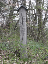 Am Waldrand eine überdachte Holzsäule