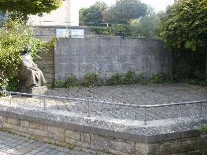Vor der Kirche St. Peter und Paul, in einem abgegrenzten Teil des Vorplatzes, befindet sich das Kriegerdenkmal. Links eine Skulptur einer, in einem Umhang gehüllt, sitzenden Frau mit geneigtem Kopf. Daneben an die Steinwand angebracht, Betontafeln mit den Namen der Opfer.