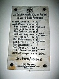 Die Namen der Gefallenen des 1. Weltkrieges stimmen nicht vollständig mit denen auf dem Denkmal in der Ortsmitte überein