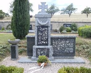 Im Friedhof befindet sich das Kriegerdenkmal. Links eine Feuerschale aus Stein. In der Mitte eine viereckige Steinsäule darauf ein deutsches Kreuz. Vorne sind eine Inschriftentafel sowie eine Namenstafel aus Marmor befestigt. Neben der Steinsäule, an einer Steinplatte befestigt, eine Namenstafel aus Marmor.