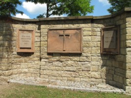Denkmal 1: Vor dem Friedhof; in Form einer Mauer gestaltet.