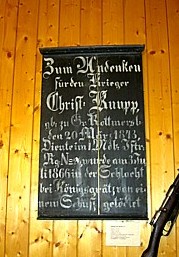 2. In den für unser Vaterland so ruhmreichen und denkwürdigen Feldzügen von 1866,1870 und 1871 kämpften aus dieser Gemeinde mit Gott für König und Vaterland