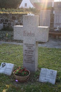 Sasbach am Kaiserstuhl (Kriegsgrab), Landkreis Emmendingen, Baden-WürttembergPLZ 79361 Im Friedhof ein einzelnes Kriegsgrab, Steinkreuz mit Inschrift, am Boden zwei Gedenktafeln in Buchform
