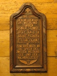 In der Schrotholzkirche von Schalscha/Szalsza befindet sich eine kleine Holztafel für die Gefallenen und Opfer beider Weltkriege.